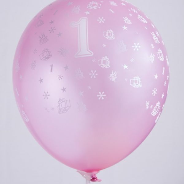 Ballons 14" - Chiffre 1 Imprimé Blanc TOT Métal Assortis - Sachet Cavalier de 10