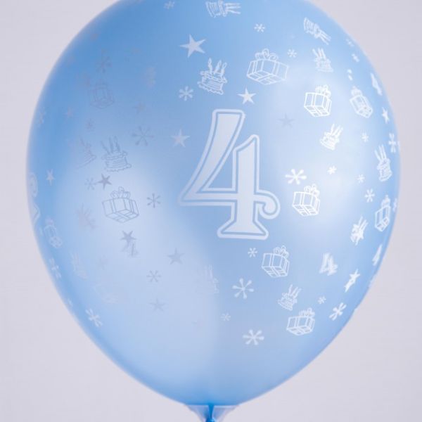 Ballons 14" - Chiffre 4 Imprimé Blanc TOT Métal Assortis - Sachet Cavalier de 10