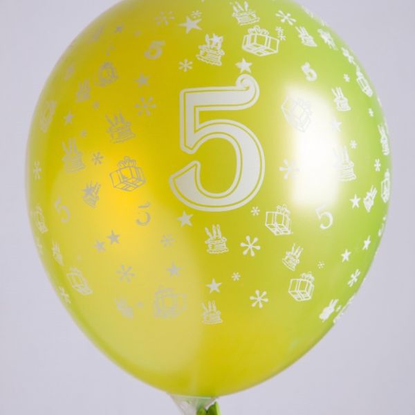 Ballons 14" - Chiffre 5 Imprimé Blanc TOT Métal Assortis - Sachet Cavalier de 10