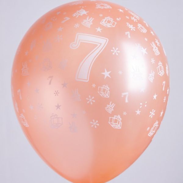 Ballons 14" - Chiffre 7 Imprimé Blanc TOT Métal Assortis - Sachet Cavalier de 10