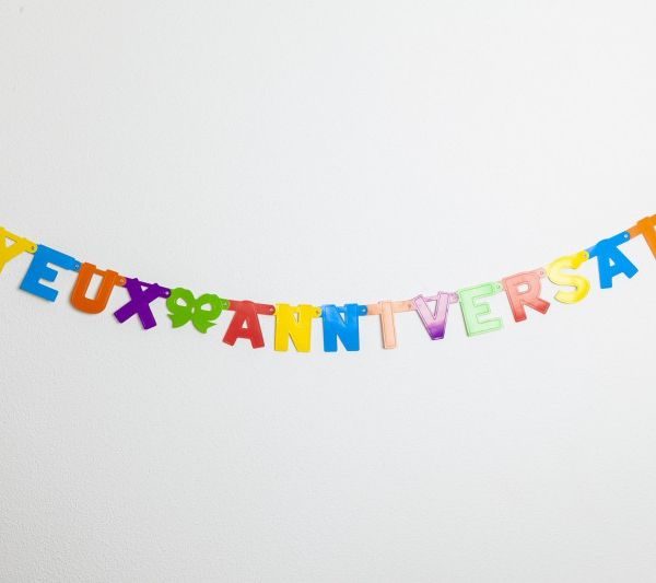 Plus que quelques pièces de disponible. Ce kit contient : 10 ballonsJoyeux Anniversaire imprimés 1 face 1 rouleau de serpentin 6 sans-gènes 1 banderole Lettre Joyeux AnniversaireLivraison
