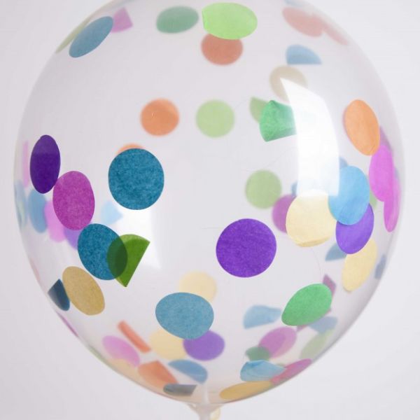 Ce ballon fait31 cm de diamètre et 100 cm de circonférence horizontale. Couleur confettis : Jaune, Bleu, Rouge, Vert, Orange, Violet, Rose Gonflage : à l'airLivraison