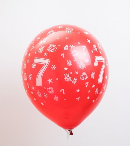 Ballons 12" - Chiffre 7 Imprimé TOT Déco Assortis - Sachet Cavalier de 10
