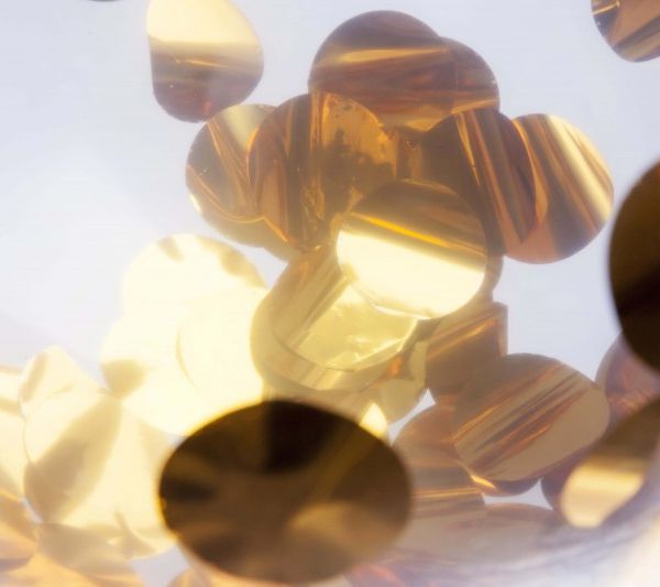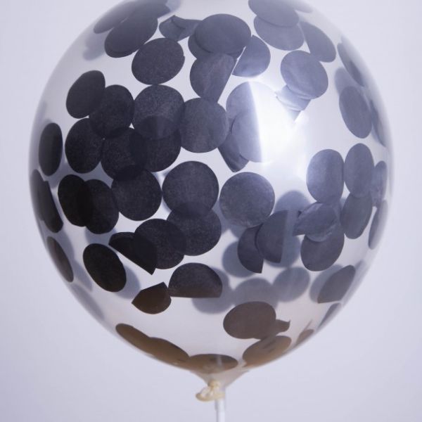 Ce ballon fait31 cm de diamètre et 100 cm de circonférence horizontale. Couleur confettis : Or, Argent, Noir Gonflage : à l'airLivraison
