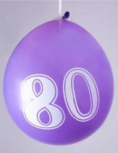 Ballons 12" - Chiffre 80 Imprimé Blanc 1 Face Assortis - Sachet Cavalier de 8