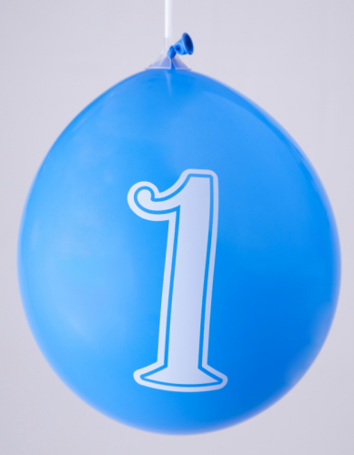 Ballons 12" - Chiffre 1 Imprimé Blanc 1 Face Assortis - Sachet Cavalier de 8