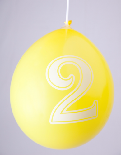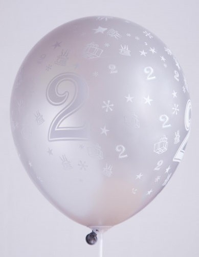 Ballons 14" - Chiffre 2 Imprimé Blanc TOT Métal Assortis - Sachet Cavalier de 10