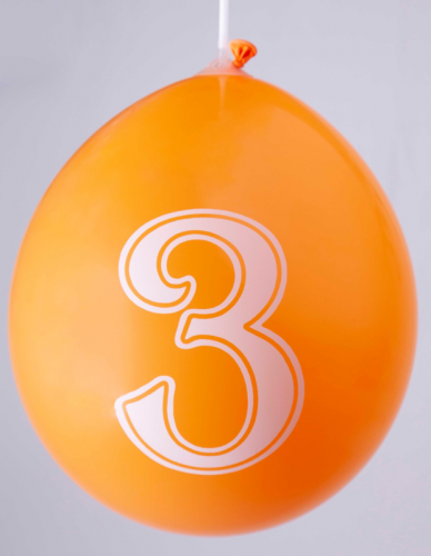 Ballons 12" - Chiffre 3 Imprimé Blanc 1 Face Assortis - Sachet Cavalier de 8