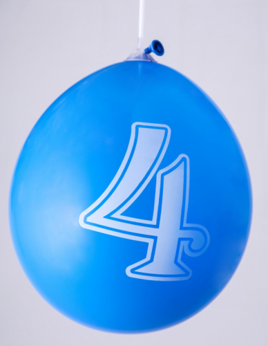 Ballons 12" - Chiffre 4 Imprimé Blanc 1 Face Assortis - Sachet Cavalier de 8