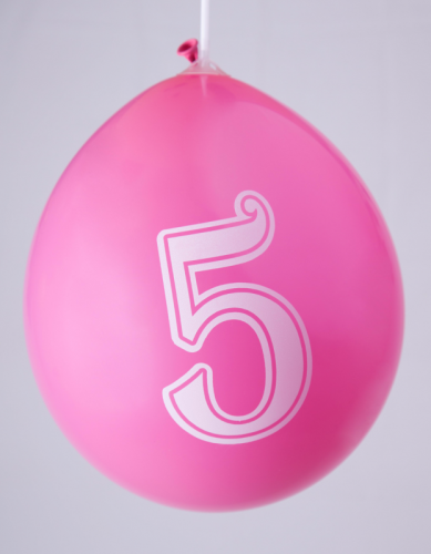 Ballons 12" - Chiffre 5 Imprimé Blanc 1 Face Assortis - Sachet Cavalier de 8