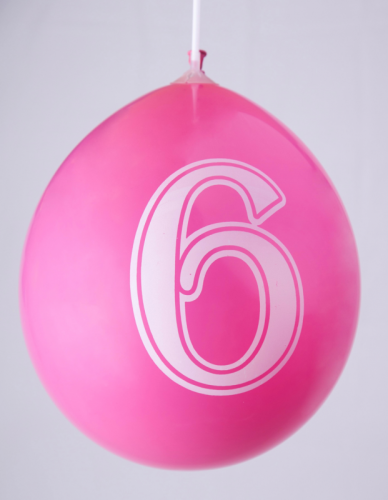 Ballons 12" - Chiffre 6 Imprimé Blanc 1 Face Assortis - Sachet Cavalier de 8