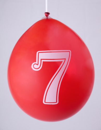 Ballons 12" - Chiffre 7 Imprimé Blanc 1 Face Assortis - Sachet Cavalier de 8