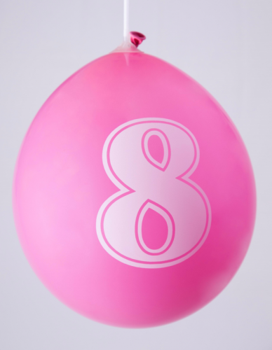 Ballons 12" - Chiffre 8 Imprimé Blanc 1 Face Assortis - Sachet Cavalier de 8