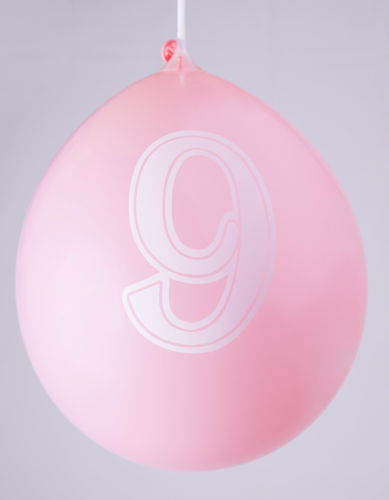Ballons 12" - Chiffre 9 Imprimé Blanc 1 Face Assortis - Sachet Cavalier de 8