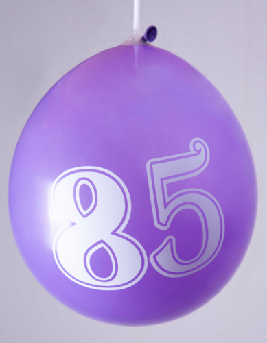 Ballons 12" - Chiffre 85 Imprimé Blanc 1 Face Assortis - Sachet Cavalier de 8