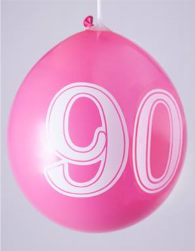 Ballons 12" - Chiffre 90 Imprimé Blanc 1 Face Assortis - Sachet Cavalier de 8