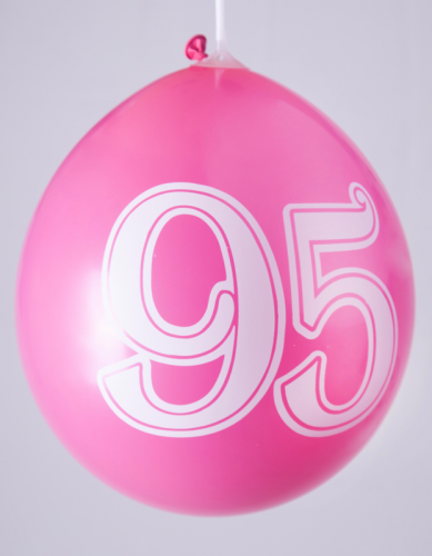 Ballons 12" - Chiffre 95 Imprimé Blanc 1 Face Assortis - Sachet Cavalier de 8