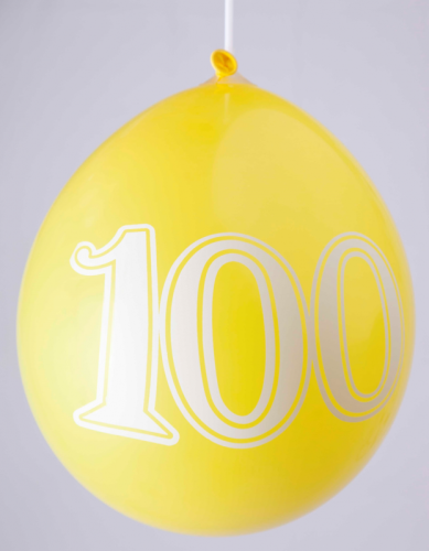 Ballons 12" - Chiffre 100 Imprimé Blanc 1 Face Assortis - Sachet Cavalier de 8