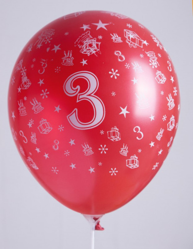 Ballons 14" - Chiffre 3 Imprimé Blanc TOT Métal Assortis - Sachet Cavalier de 10