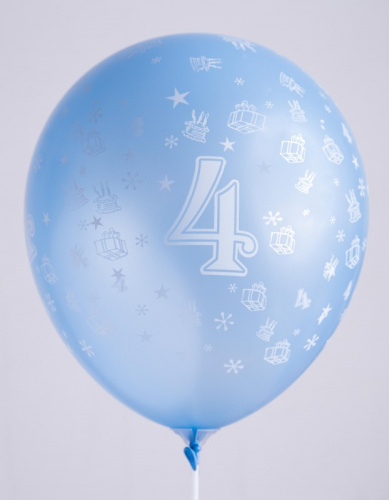 Ballons 14" - Chiffre 4 Imprimé Blanc TOT Métal Assortis - Sachet Cavalier de 10
