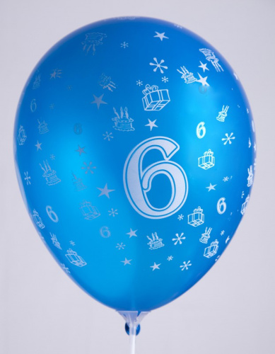 Ballons 14" - Chiffre 6 Imprimé Blanc TOT Métal Assortis - Sachet Cavalier de 10