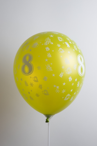 Ballons 14" - Chiffre 8 Imprimé Blanc TOT Métal Assortis - Sachet Cavalier de 10