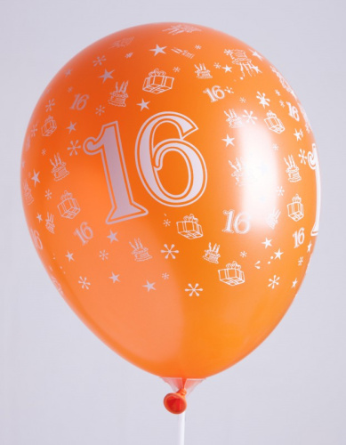 Ballons 14" - Chiffre 16 Imprimé Blanc TOT Métal Assortis - Sachet Cavalier de 10