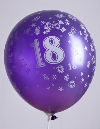 Ballons 14" - Chiffre 18 Imprimé Blanc TOT Métal Assortis - Sachet Cavalier de 10