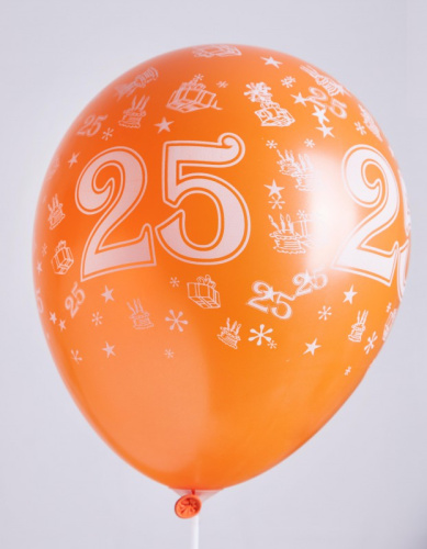 Ballons 14" - Chiffre 25 Imprimé Blanc TOT Métal Assortis - Sachet Cavalier de 10
