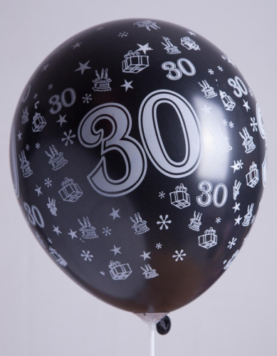 Ballons 14" - Chiffre 30 Imprimé Blanc TOT Métal Assortis - Sachet Cavalier de 10