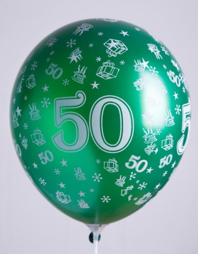 Ballons 14" - Chiffre 50 Imprimé Blanc TOT Métal Assortis - Sachet Cavalier de 10