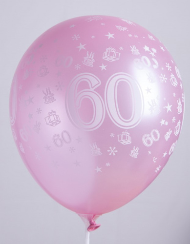 Ballons 14" - Chiffre 60 Imprimé Blanc TOT Métal Assortis - Sachet Cavalier de 10