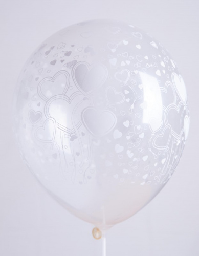 Ballons 12" - Imprimé TOT - Transparent Coeurs Blancs - Sachet de 100
