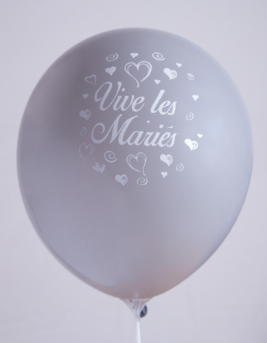 Ballons 12" - Imprimé 1 Face Vive Les Mariés Gris - Sachet Cavalier de 10