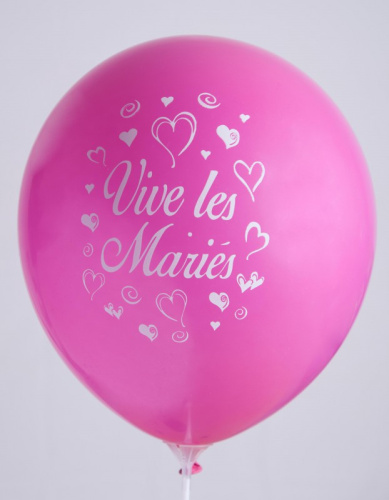 Ballons 12" - Imprimé 1 Face Vive Les Mariés Magenta - Sachet de 10