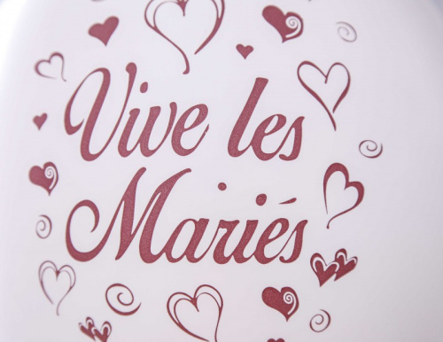 Ballons 12" - Imprimé 1 Face Vive les Mariés Bordeaux et Blanc - Sachet Cavalier de 10