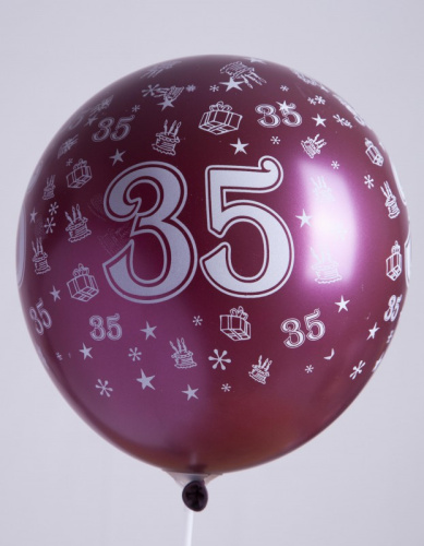 Ballons 14" - Chiffre 35 Imprimé Blanc TOT Métal Assortis - Sachet de 100