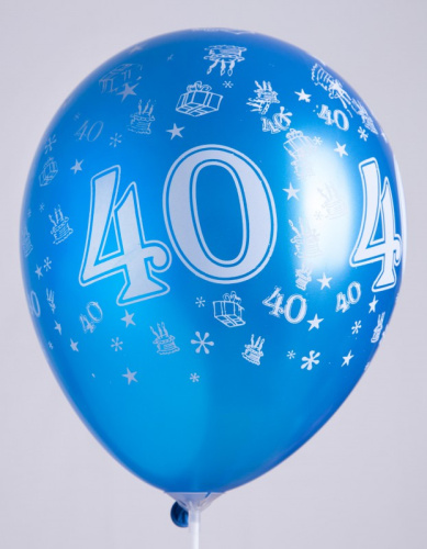 Ballons 14" - Chiffre 40 Imprimé Blanc TOT Métal Assortis - Sachet de 100