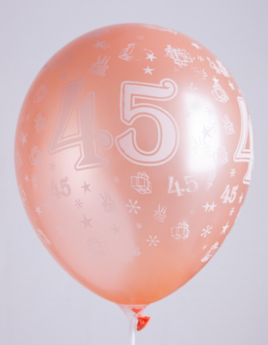 Ballons 14" - Chiffre 45 Imprimé Blanc TOT Métal Assortis - Sachet de 100