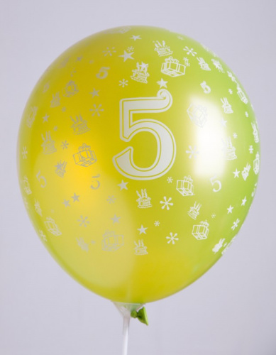 Ballons 14" - Chiffre 5 Imprimé Blanc TOT Métal Assortis - Sachet de 100