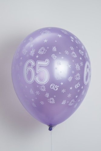 Ballons 14" - Chiffre 65 Imprimé Blanc TOT Métal Assortis - Sachet de 100