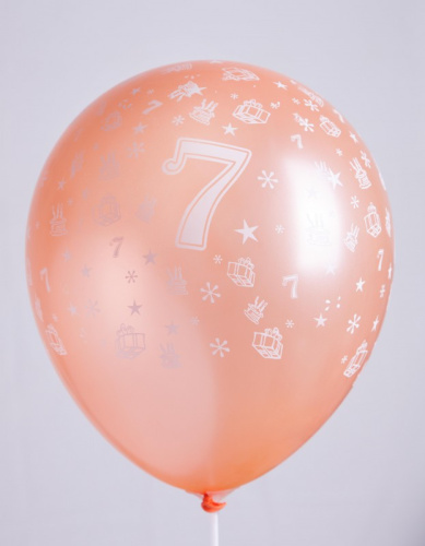 Ballons 14" - Chiffre 7 Imprimé Blanc TOT Métal Assortis - Sachet de 100