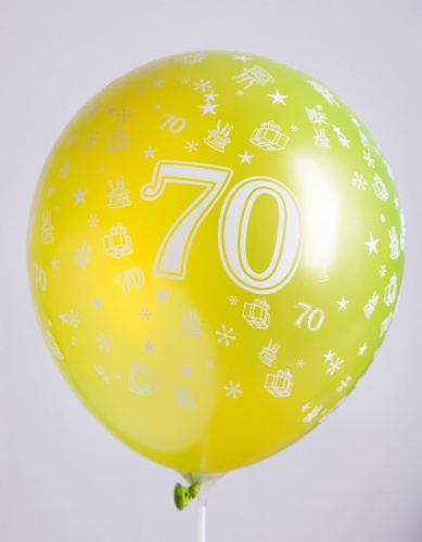 Ballons 14" - Chiffre 70 Imprimé Blanc TOT Métal Assortis - Sachet de 100