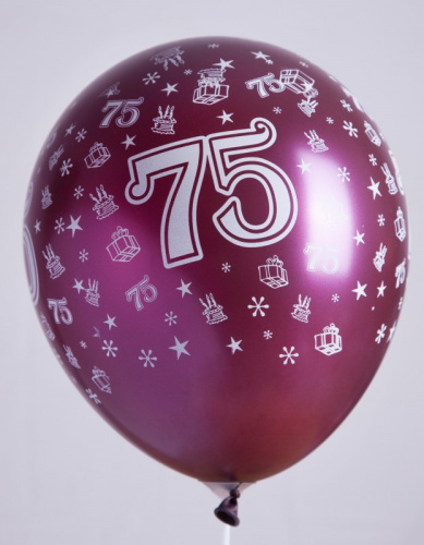 Ballons 14" - Chiffre 75 Imprimé Blanc TOT Métal Assortis - Sachet de 100