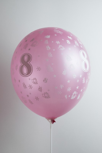 Ballons 14" - Chiffre 8 Imprimé Blanc TOT Métal Assortis - Sachet de 100