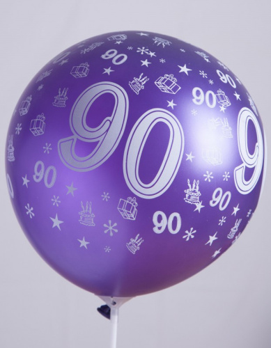 Ballons 14" - Chiffre 90 Imprimé Blanc TOT Métal Assortis - Sachet de 100