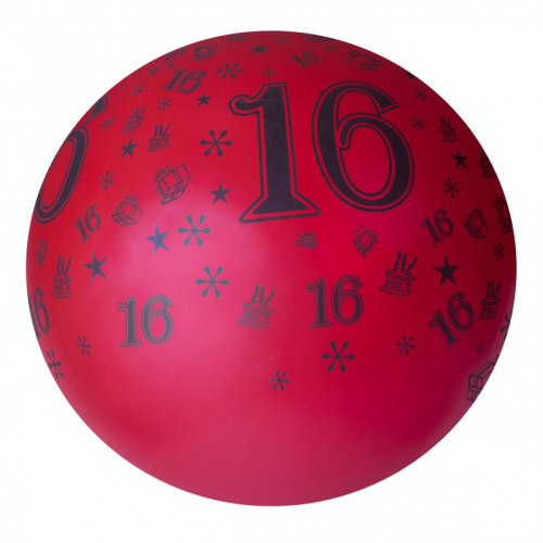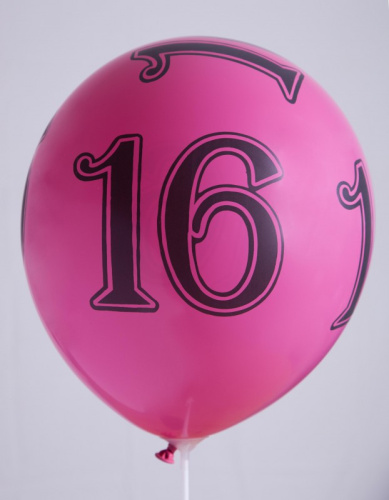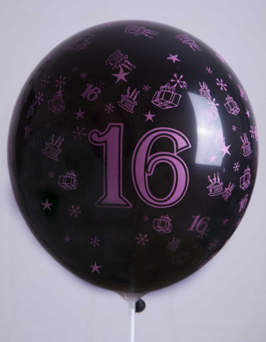 Ballons 12" - Chiffre 16 Imprimé Fushia TOT Noir - Sachet de 100