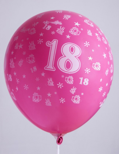 Ballons 12" - Chiffre 18 Imprimé Blanc TOT Assortis - Sachet de 100