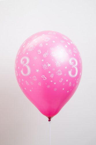 Ballons 12" - Chiffre 3 Imprimé Blanc TOT Assortis - Sachet de 100