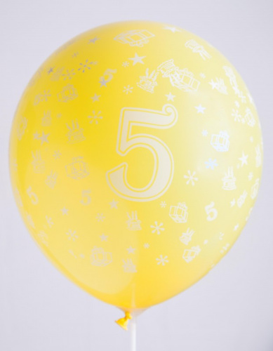 Ballons 12" - Chiffre 5 Imprimé Blanc TOT Assortis - Sachet de 100